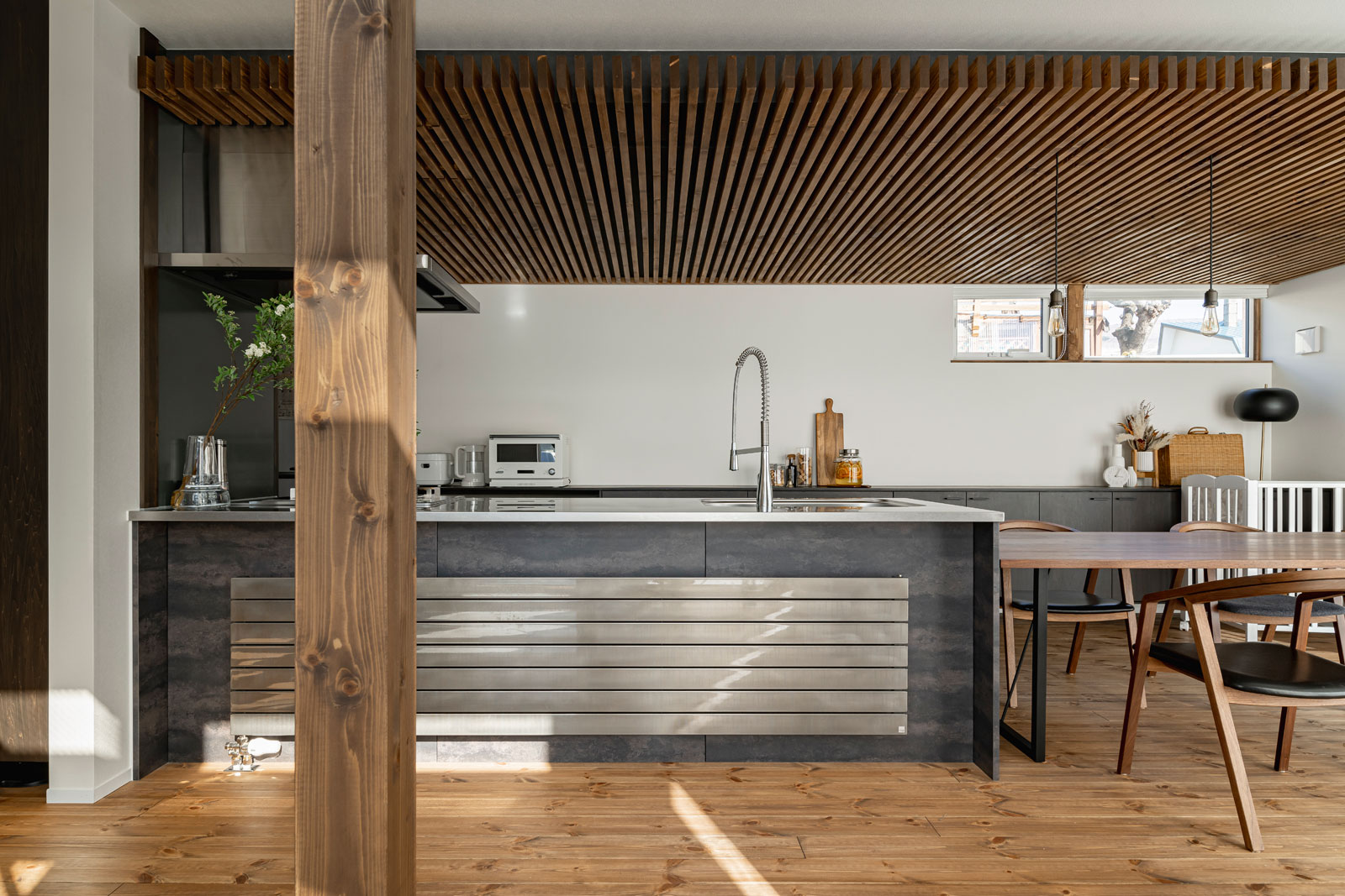 2階にリビング だけどダイニングは下階にある。