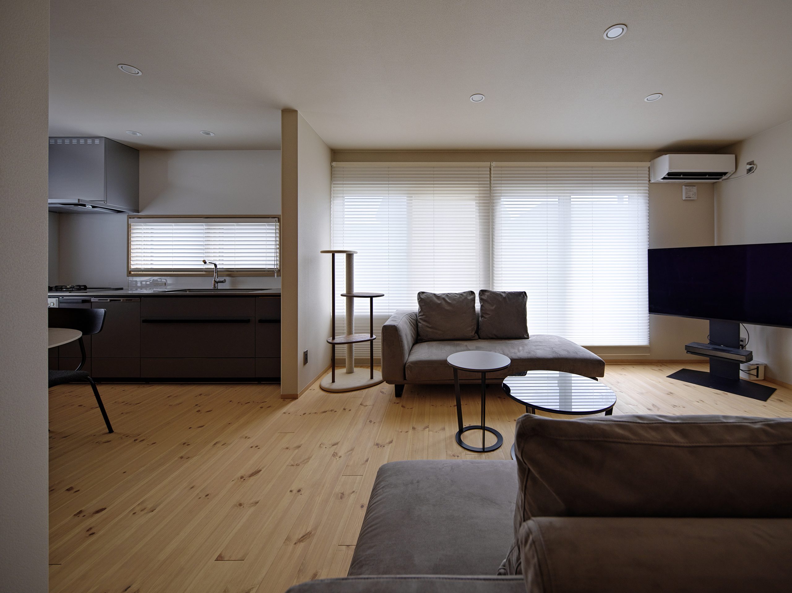 基礎のみを残して要望をたくさん盛り込んだ住宅が完成しました。「基礎の形が決まっているので、その制限の中で最大限やりたい事、子供のために考えを盛り込んだ、そんな家です。」