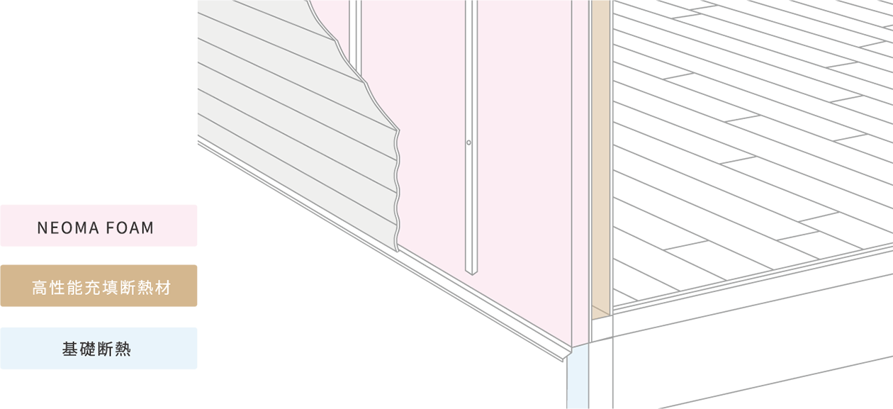 ネオマフォームは、断熱性が高く環境にも配慮した炭化水素で発泡し、そのガスを気泡の中に閉じ込めることで、高い性能を実現しています。