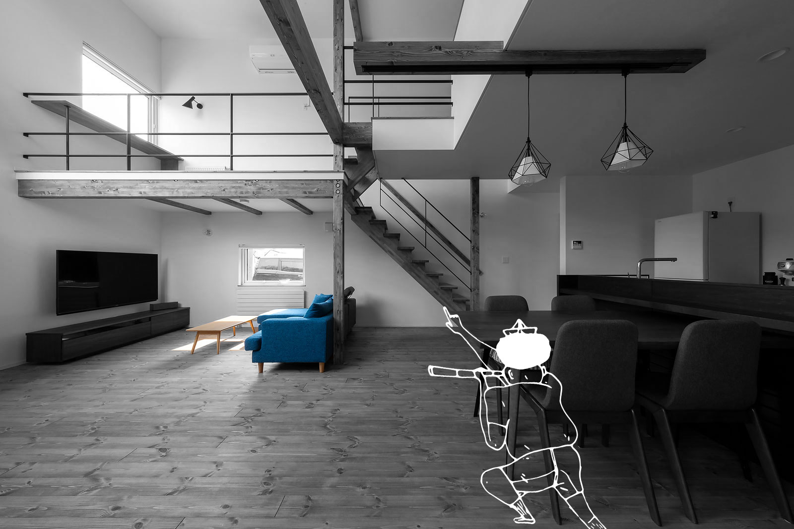 玄関で迎えるのは、 柔らかな日差しに向くひまわりの「藍」。 雑貨や家具をどこに置くか、どこで読書を楽しむか、 家族のこれからの暮らしを場面ごとに想像した。