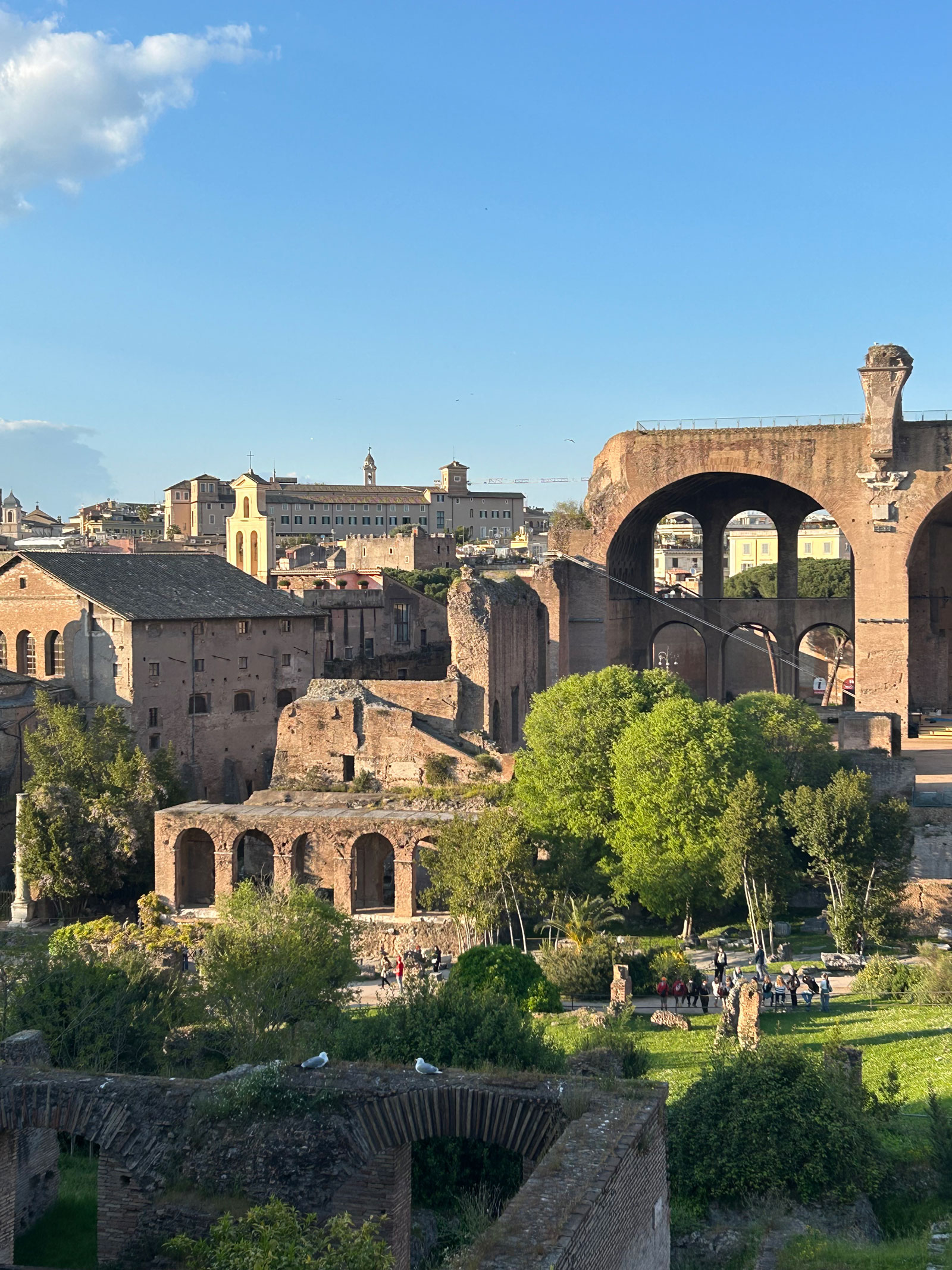 コロッセオにパラティーノの丘、夕暮れのフォロロマーノ、スペインを広場を見て、夕食はやっぱりカルボナーラ。