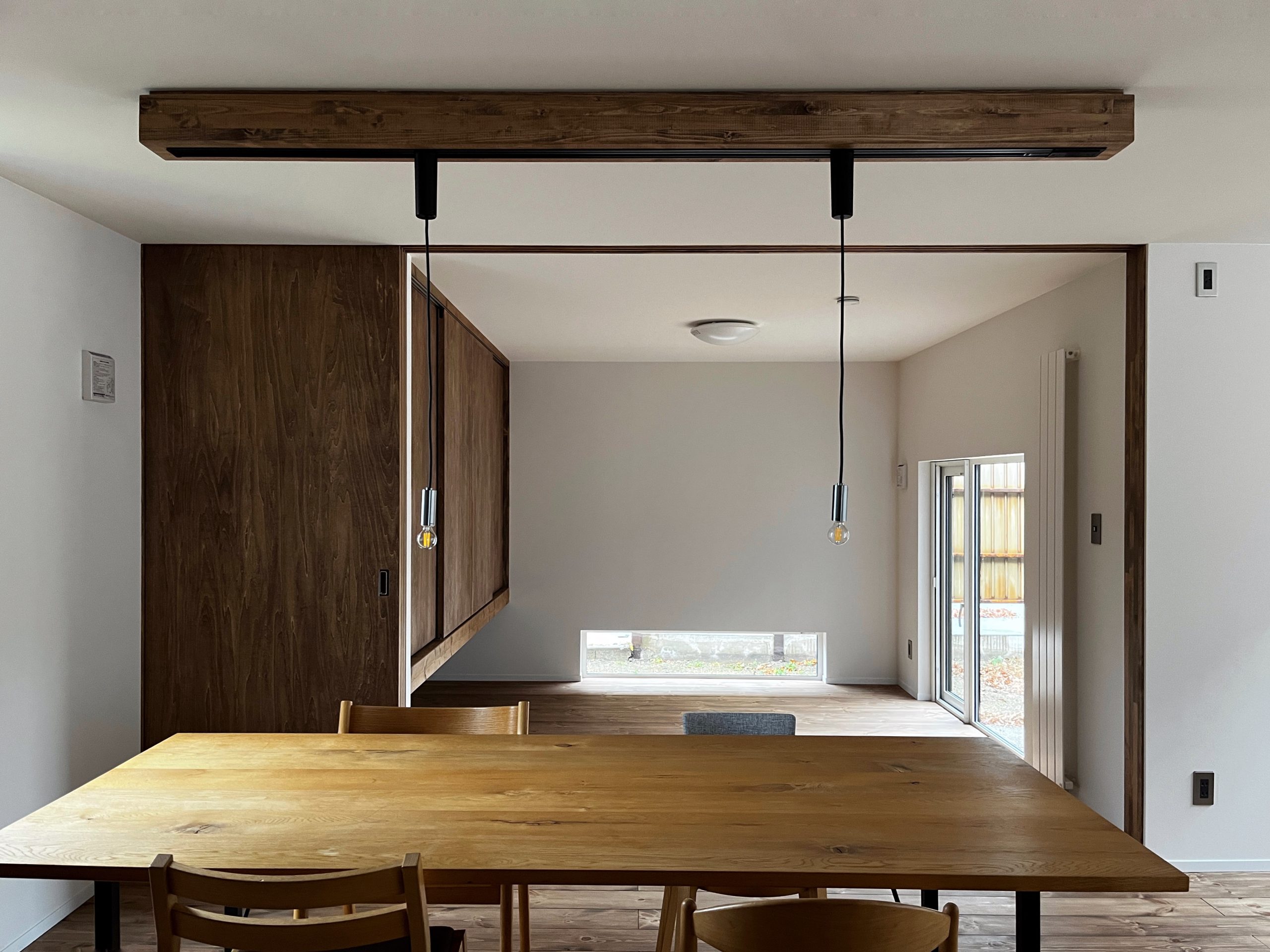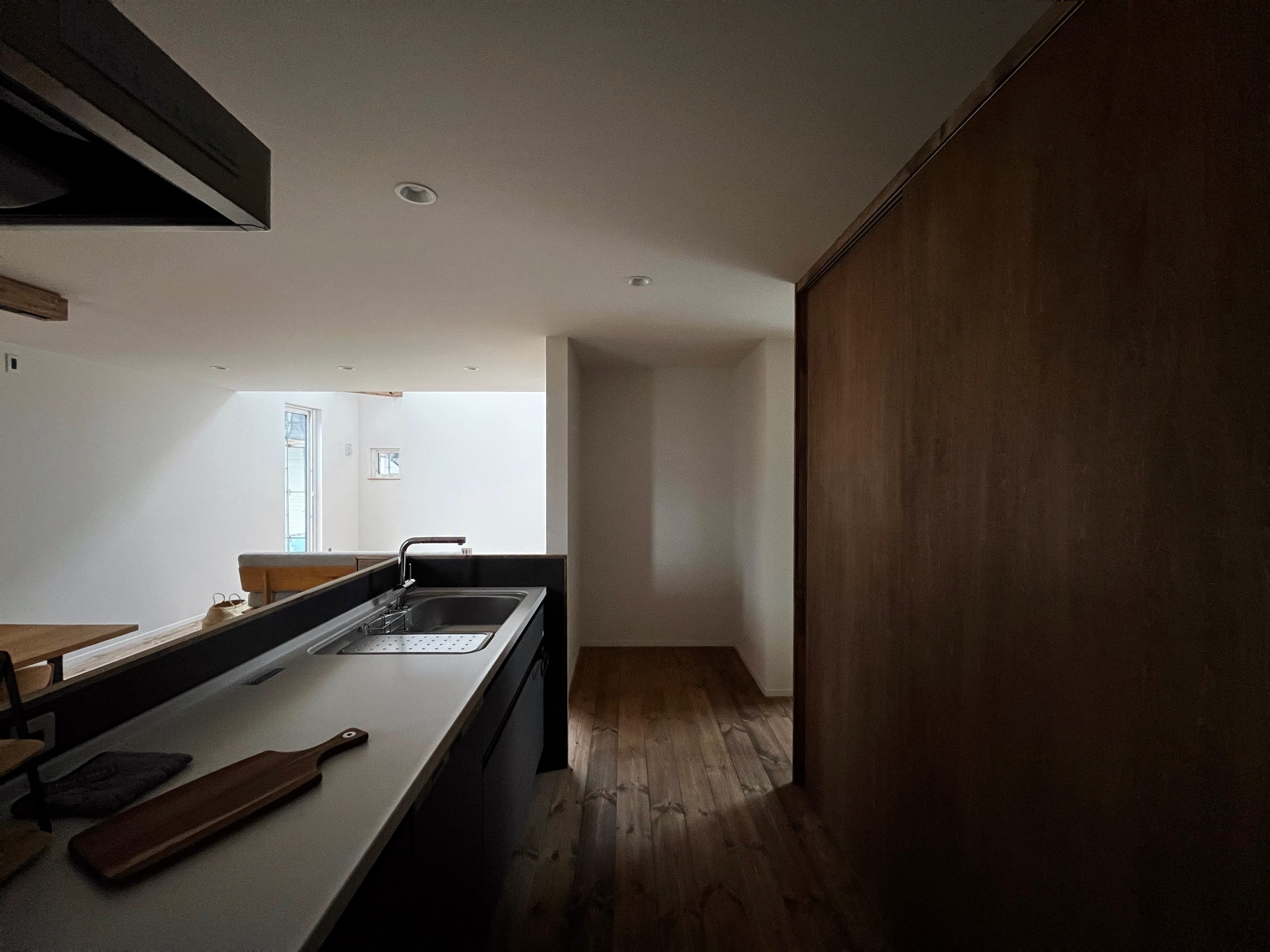 オプションで1階に1部屋が追加されており、小さなお子様がいる家庭では、お子様の遊び場に出来、キッチンからも見守れます。