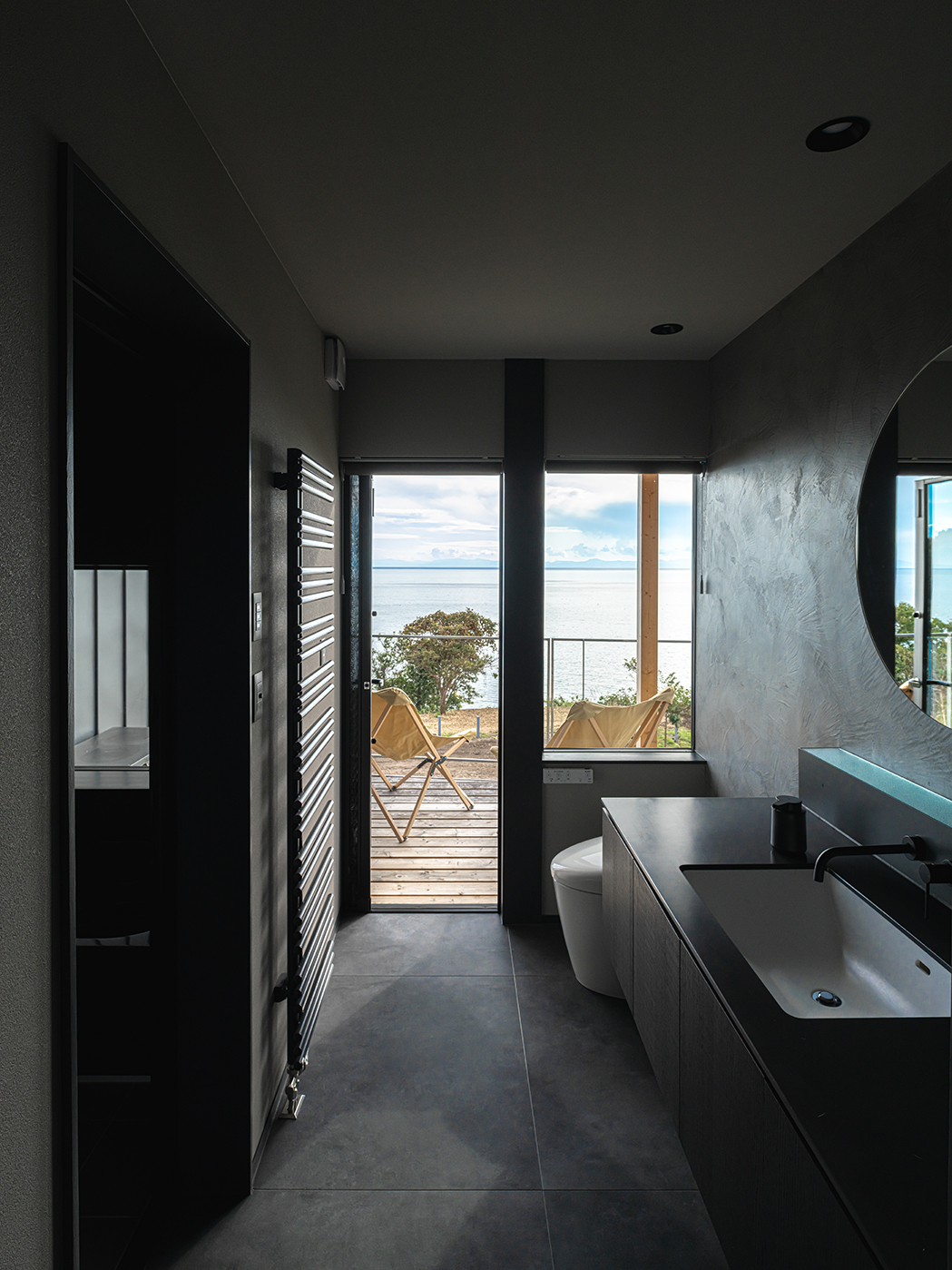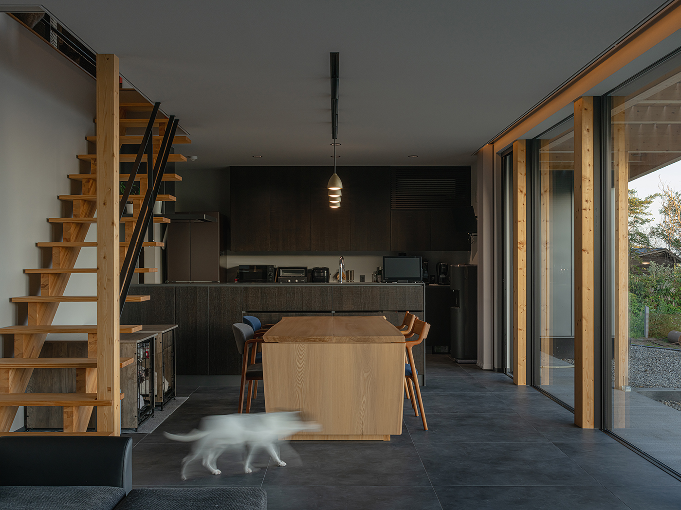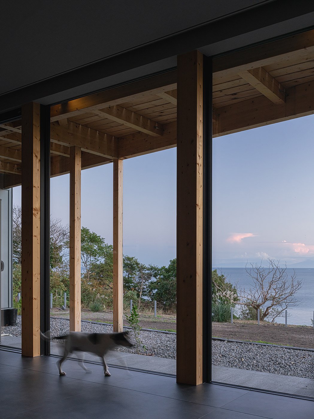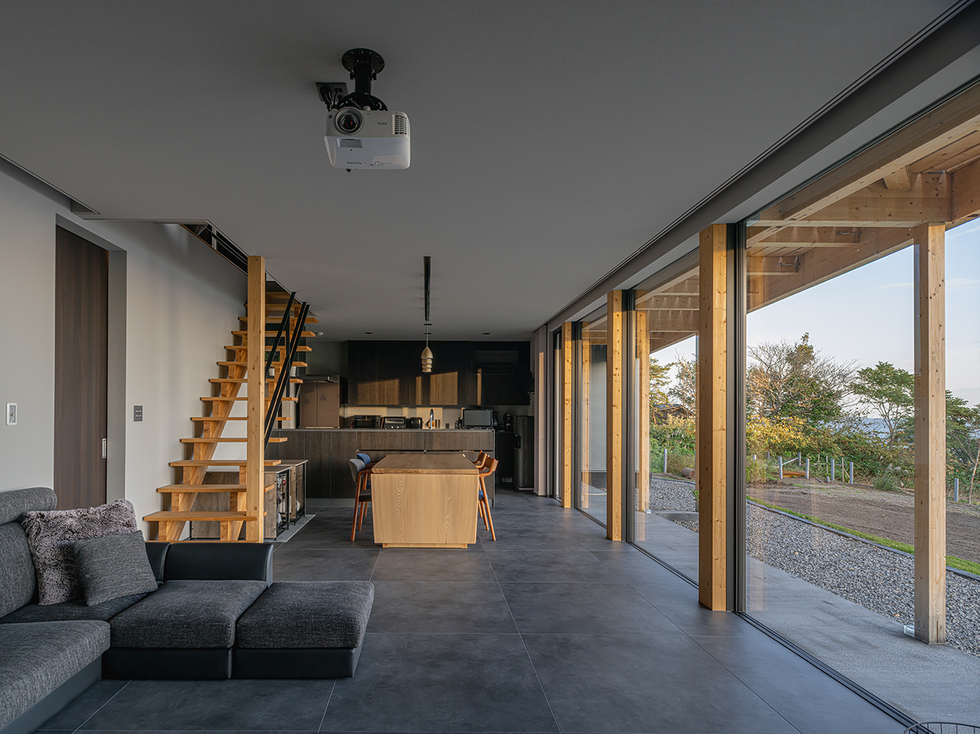 「海沿いの家」 世界遺産、知床の港を望む場所に建つ海沿いの家。 いつか家を建てたときの為に集めていた家具や照明器具たちが、 窓から見える景色やいろいろな素材を使った壁や天井と馴染んで ずっと前からその場所にあるような家。 いつかテラスを作りたいと話すオーナー様。