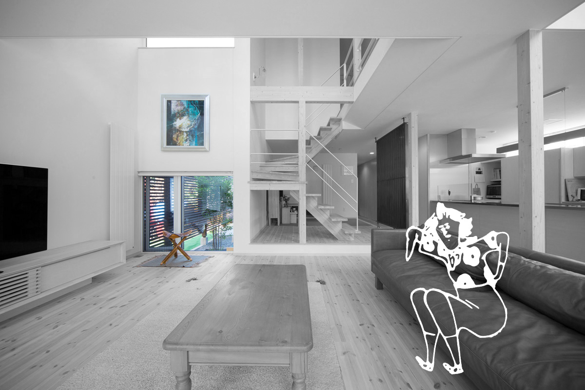 手前と奥の様子が重なって深まるミンナの場所。 優しくて柔らかな光で満たされたミンナの場所。家族で共有する幾つかの場所は、降り注ぐ光の下で1つになる。 視線が抜ける、気配を感じられる、そんな繋がり方でいたい。