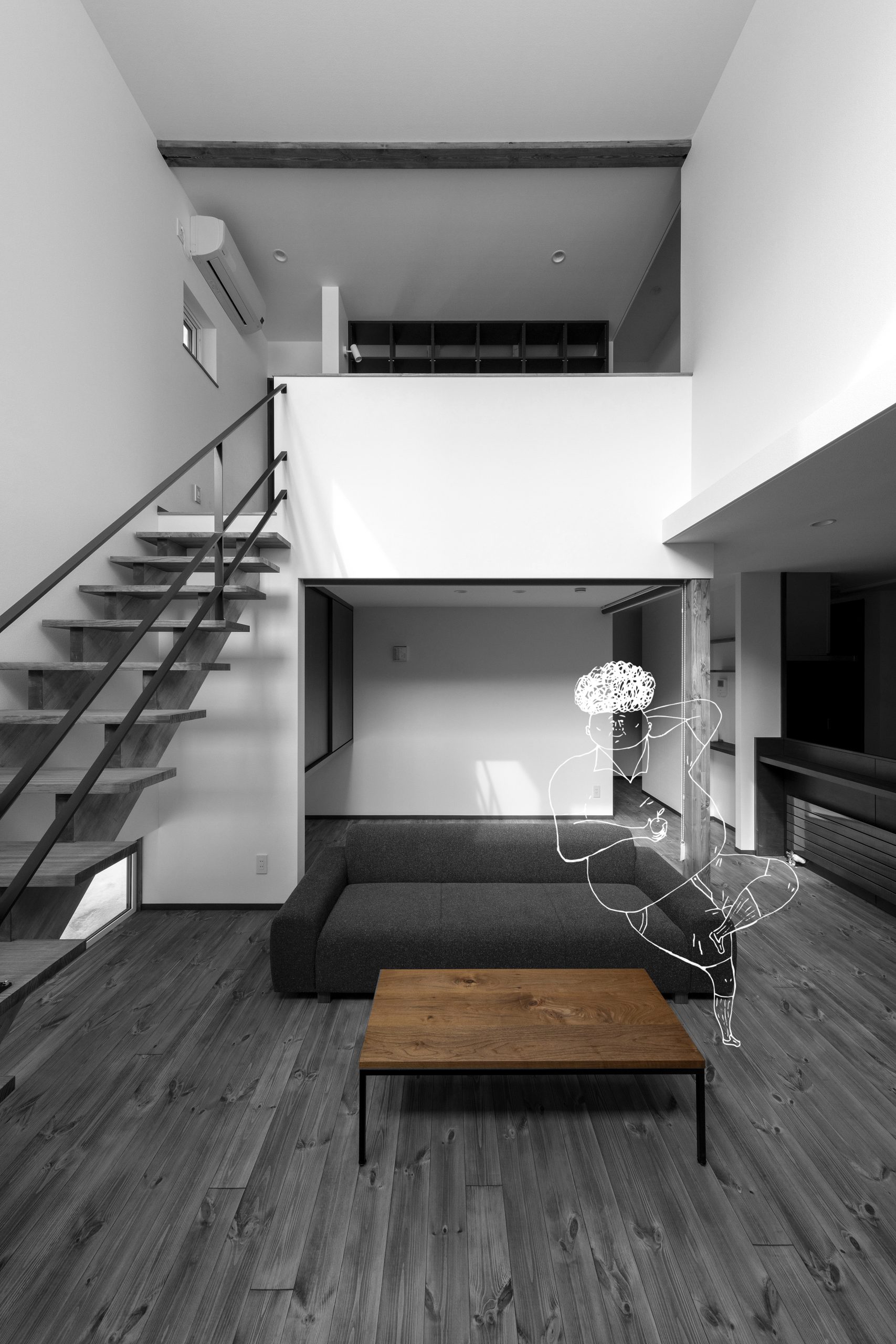 重量木骨の家の事例です。敷地の環境から取り入れにくかった採光は、 大きな吹抜け窓を設けたことにより光が伸び、 書斎とフリースペースに降り注ぐ。