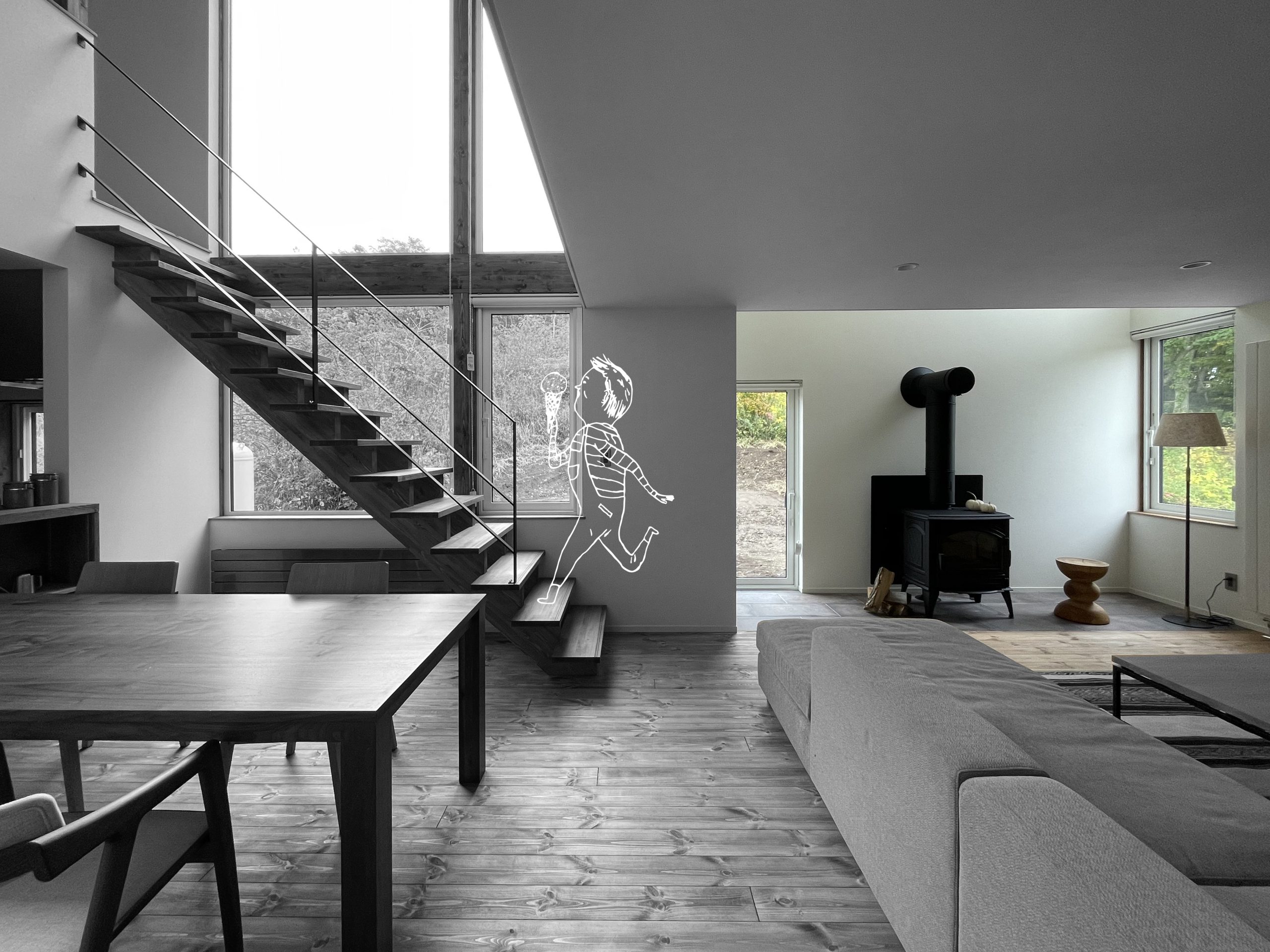 忙しい日常から解放されるような器。 家族が集まるリビングには薪ストーブ。 炎の揺らぎを感じながら 家族の未来を語る時間。