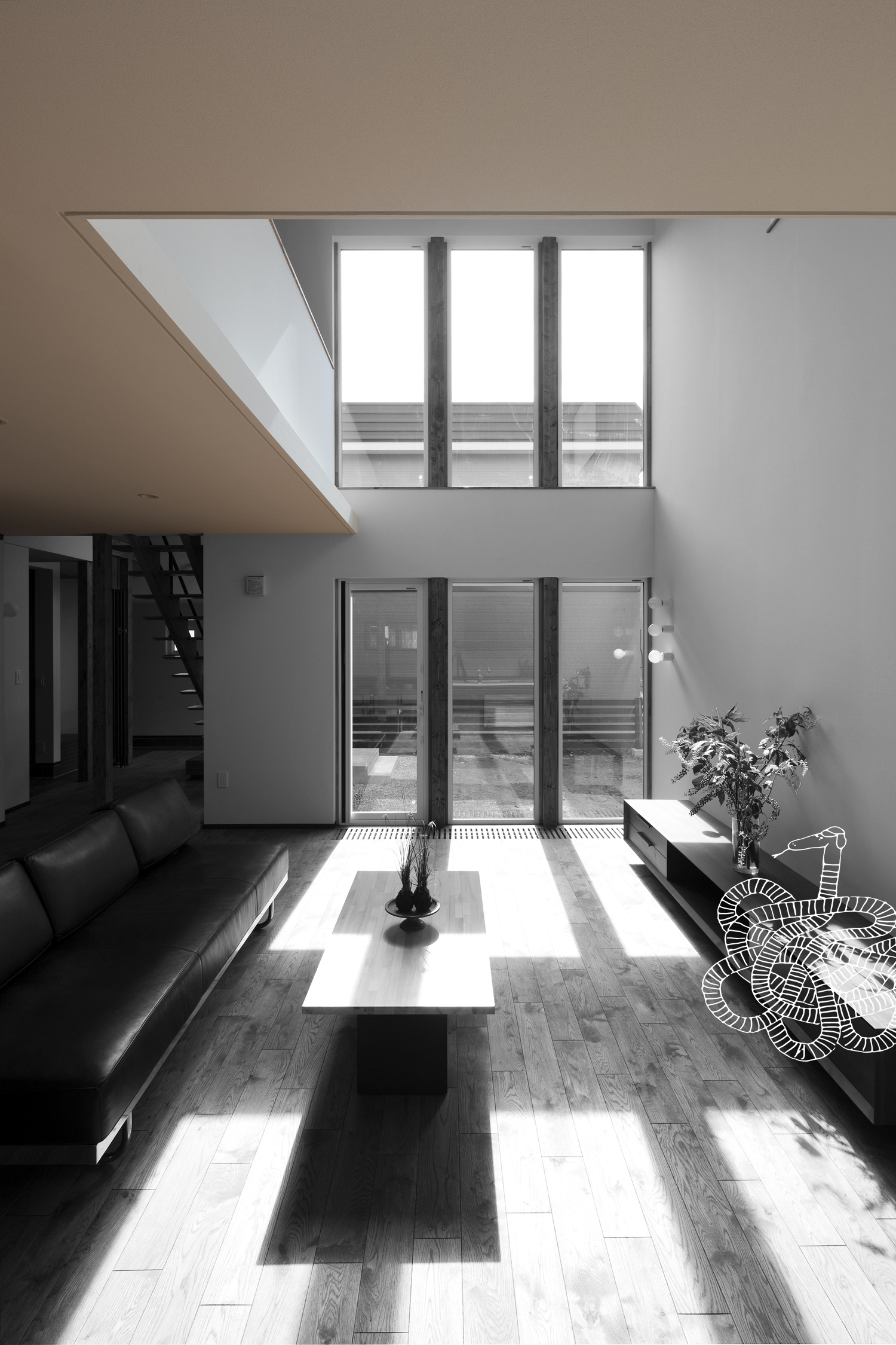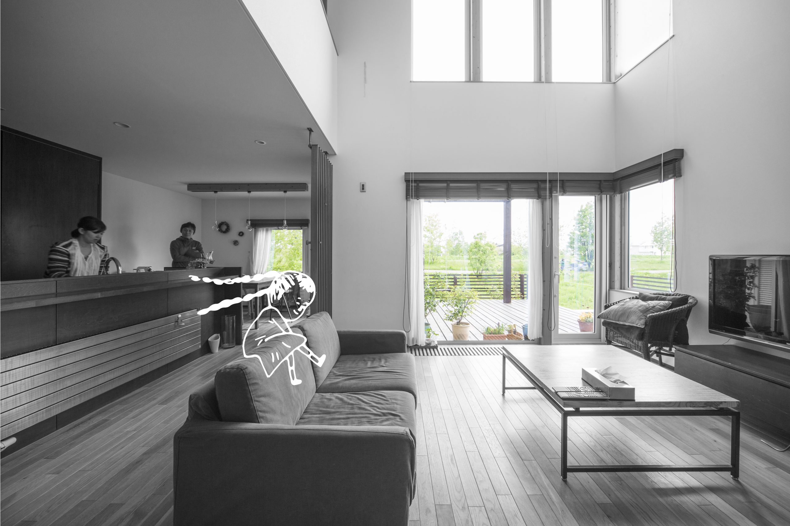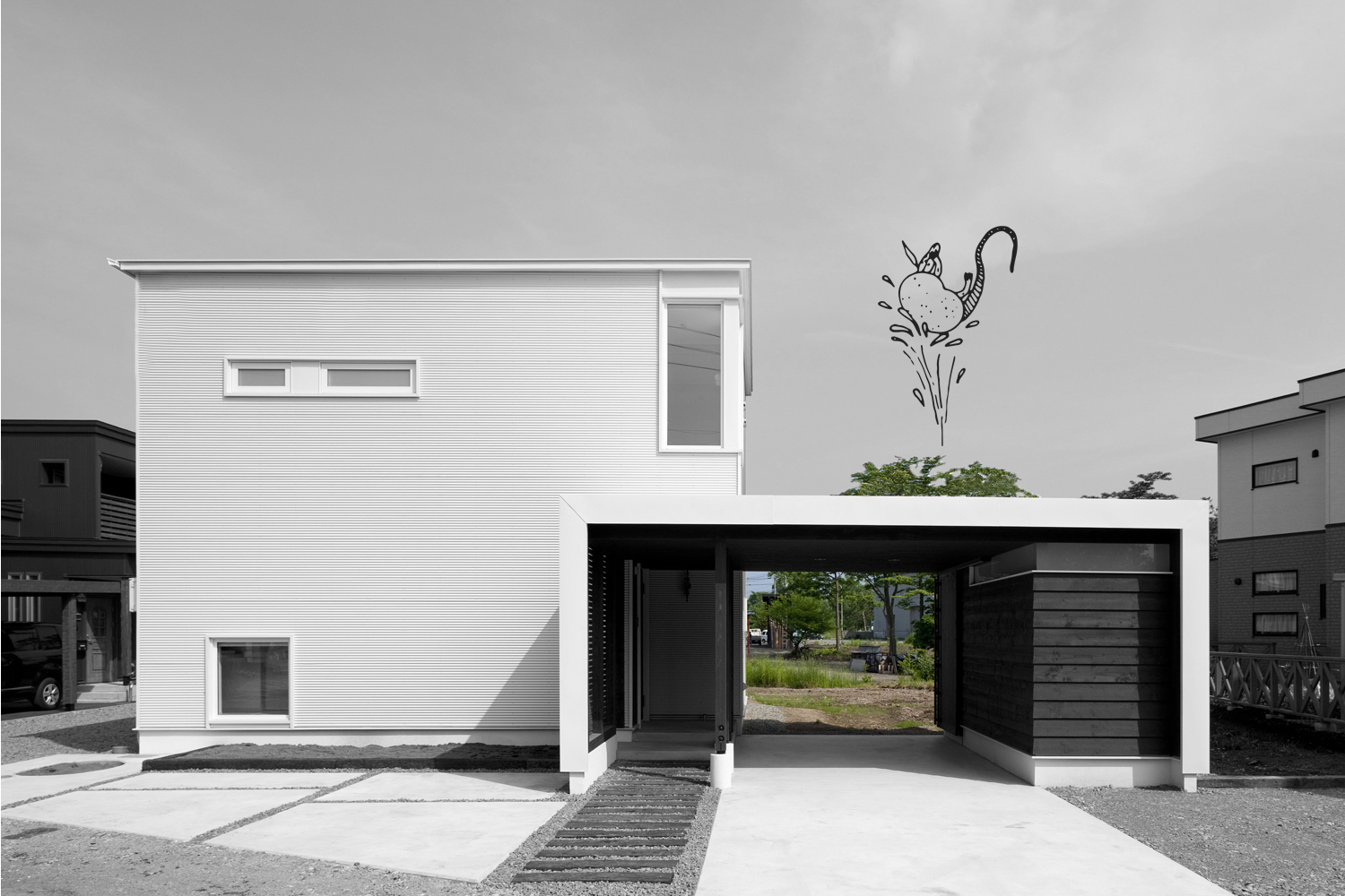 ユカンボシ川の河川沿いに建つ家。 普通の住宅街とは一風違ったロケーションの拡がる敷地。 そこに建つこの家には、この土地を購入したオーナーの意図が確かに反映されている。