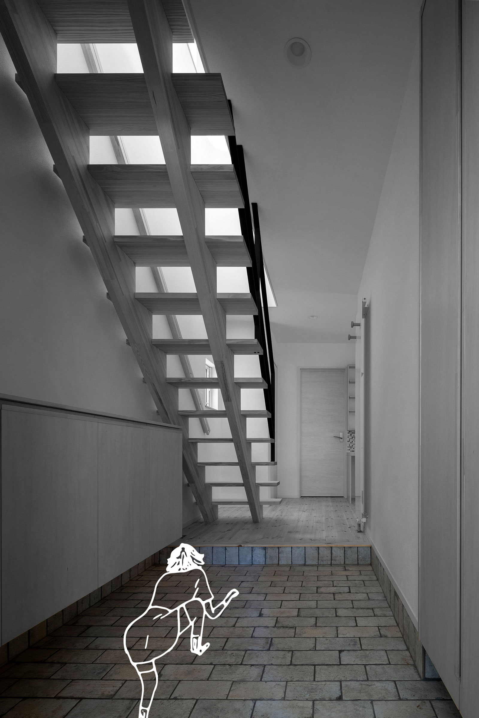 ちょっと広めの階段の踊り場で、今日は絵を描こう。明日は本を読もう。 ここに居るとみんなとつながっているから。 リビングもダイニングもキッチンも和室も2階のフリースペースも。 ひとつの空間に、それぞれの場所が点在している。 そして、ゆるやかにつながっていく。