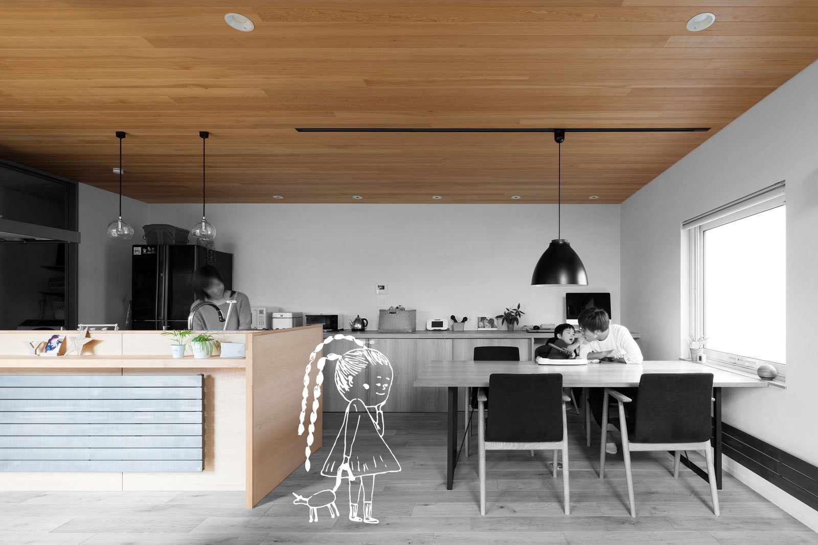 敷地を全面に使い 贅沢に作った平屋の住宅 小上がりをコアとして 玄関 リビングをつなぐ回廊 キッチンをコアとして ユーティリティー クローゼット 寝室をつなぐ回廊 の二つの回廊を持つ家